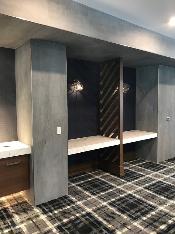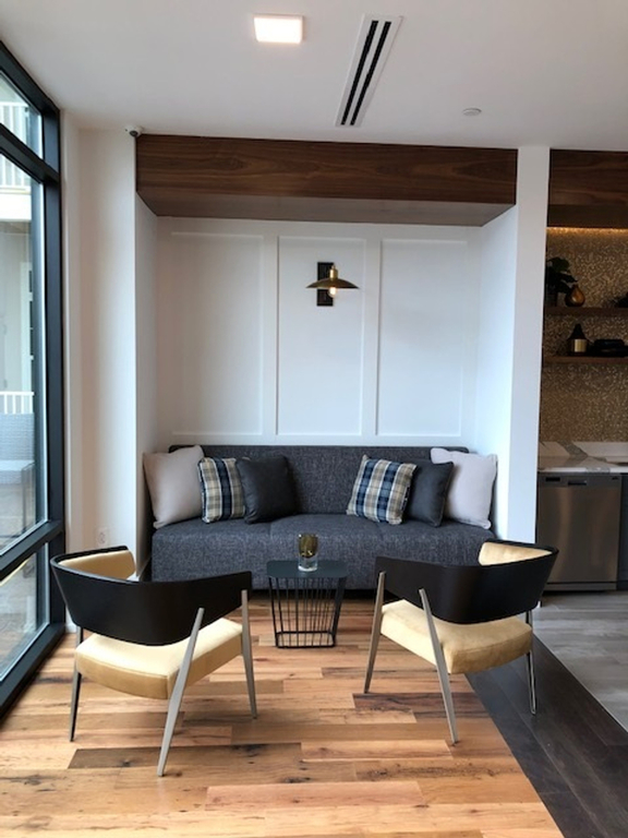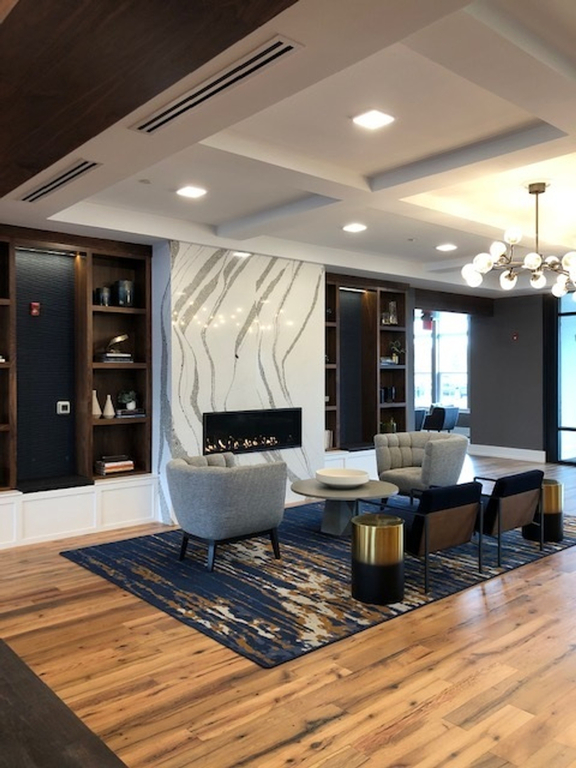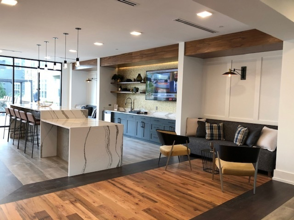 Custom AtlasMasland area rugs and reclaimed oak flooring from Nydree's were used in The Airdrie at Station Square, a multifamily apartment complex in the Mainline.